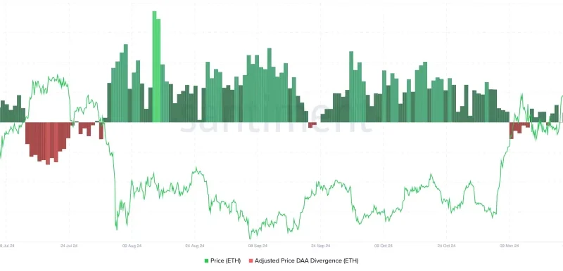 Ethereum (ETH) ağ etkinliğindeki azalma, fiyatın kısa vadede geri çekilebileceğini gösteriyor. DAA farkı eksi yüzde 64,17’ye geriledi; bu da kullanıcı etkileşiminin düştüğünü ifade ediyor.
