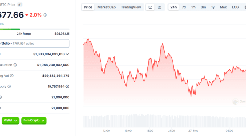 Bitcoin, son 24 saatte sert düşüş yaşayarak 91.998 dolara geriledi, ardından 97.541 dolara toparlandı. Piyasa hakimiyeti %53,84 seviyelerine düştü.