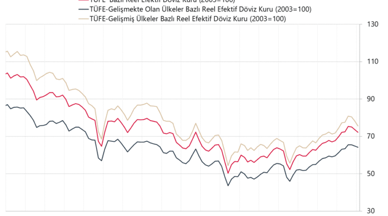 Nisan ayında reel efektif döviz kuru, bir önceki aya göre 1,55 puan düşüşle 72,12 seviyesine geriledi. TCMB, bu verileri duyurdu.