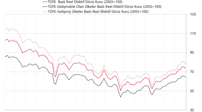 Reel efektif döviz kuru endeksi, mart ayında 1,62 puan düşerek 73,48 seviyesine geriledi. TCMB, TÜFE bazlı verileri yayımladı.